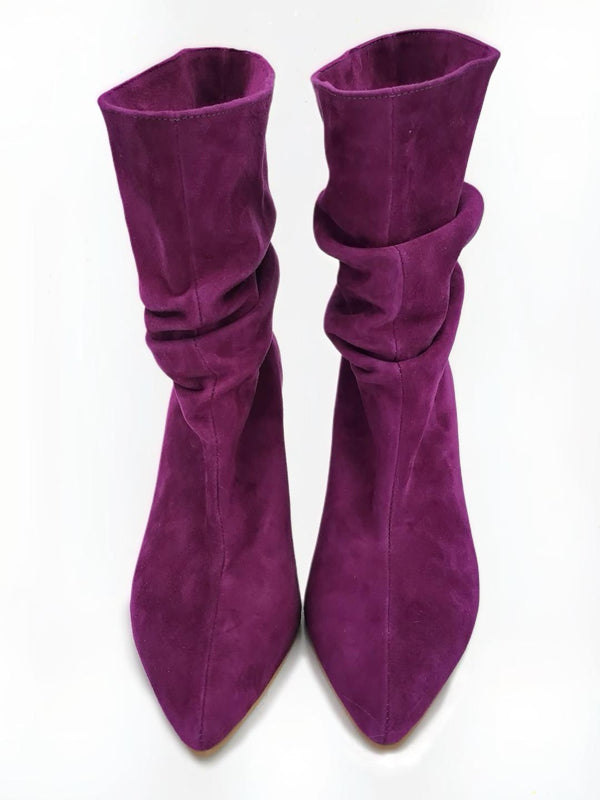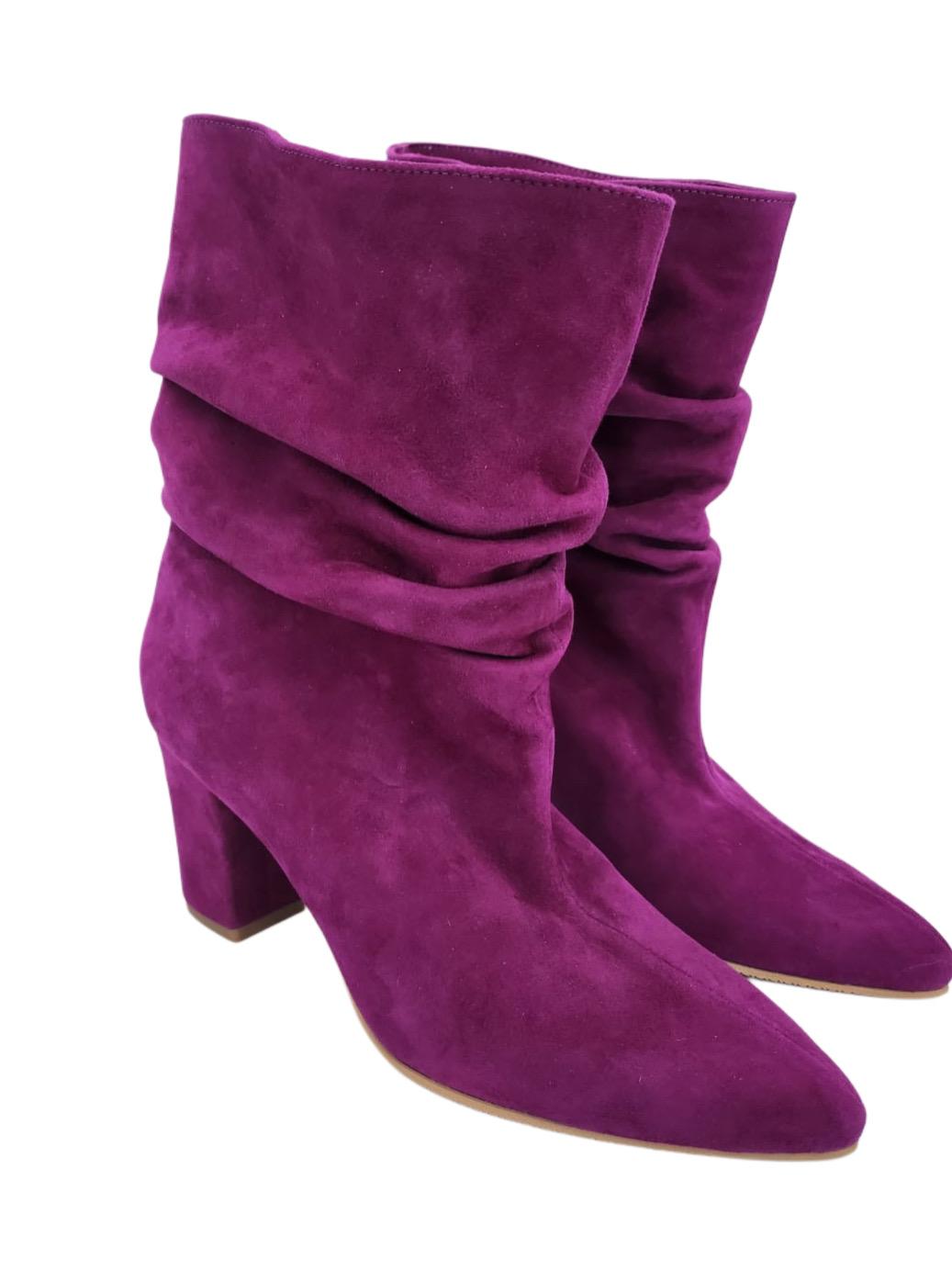 Cizme din piele naturala intoarsa fuchsia.