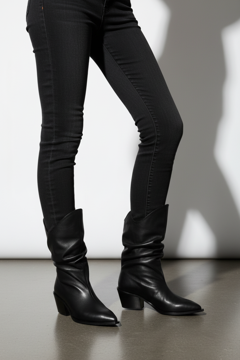 Cizme fronsate din piele naturala neagra.