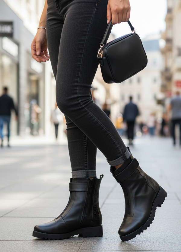 Ghete din piele naturala normala neagra (culoare 1) si piele naturala croco neagra (culoare 2).