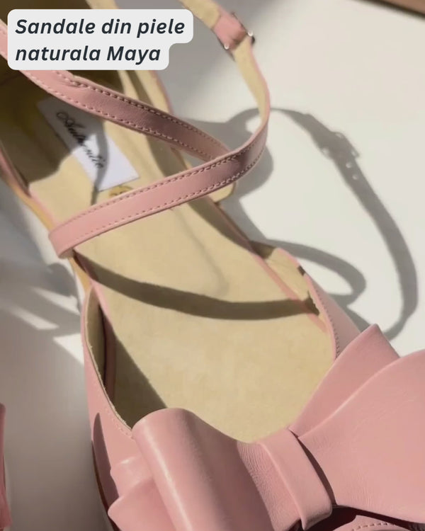 Sandale din piele naturala roz cu interior din piele naturala, talpa EVA.